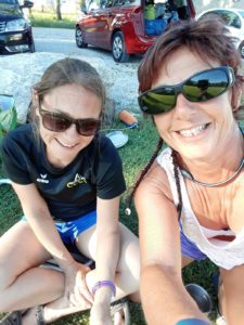 Vereins-treu angezogen mit den neuen ICM T-Shirts und Hoodie fuhren Nelly und Victoria am Samstag den 17. Juni mit dem Auto Richtung Seyssel, Frankreich. Angekommen gingen wir zur Anmeldung. Ein SST Werbebanner für Engadin erinnerte uns an die Heimat während wir versuchten uns auf Französisch durchzuschlagen. Die 2 alte Damen am Anmeldungstisch verlangte, trotz Regelment, weder Pässe noch Arztbescheinigungen. Vielleicht wäre dies einfach zu kompliziert gewesen.